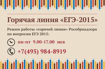 В связи с подготовкой к проведению единого государственного экзамена 2015 года Рособрнадзор открывает специальную \”горячую линию\”, по телефону которой можно обратиться к специалистам ведомства с вопросами, касающимися разных аспектов: процедуры, оформления заданий, организационных требований, – а также сообщить о нарушениях на экзамене.