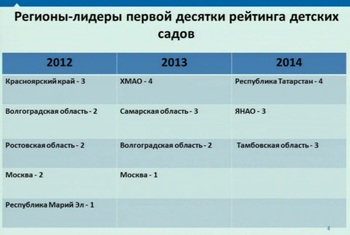 Директор Института психолого-педагогических проблем детства РАО Татьяна Волосовец согласилась с коллегой, отметив, что, действительно, число регионов-участников проекта год от года только растет. Если в 2012 году их было всего 7 (2001 детский сад), то в текущем их уже 21 (3969 детских садов).