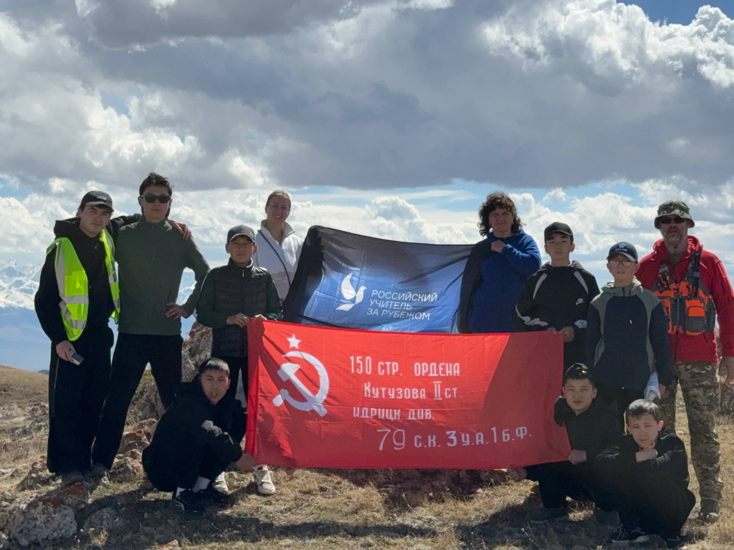 Учителя международного гуманитарного проекта «Российский учитель за рубежом» и ученики средней школы №2 имени В. П. Чкалова города Нарын (Кыргызстан) в преддверии Дня Победы совершили восхождение на гору высотой 2945 метров, где развернули копию Знамени Победы. Акция стала частью традиции школы по увековечению памяти героев Великой Отечественной войны.
