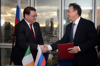 В рамках Межправительственного Российско-Ирландского комитета по развитию делового сотрудничества состоялась церемония подписания Меморандума о взаимопонимании между Минобрнауки РФ и Департаментом образования и навыков Ирландии о сотрудничестве в области высшего образования. В торжественном мероприятии приняли участие замминистра образования и науки РФ Вениамин Каганов и Посол Ирландии в России Эдриан МакДейд.