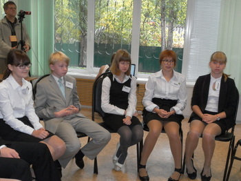 Учащиеся и их родители усаживаются в зале, подготовленном для проведения собрания. Они садятся по группам. В группах по пять-шесть человек. Группы образуют взрослые и дети отдельно.