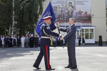 Воспитанникам корпуса в Ростовской области уже во второй раз вручили знамя Президента России. Ответственную миссию исполнил полномочный представитель Президента Российской Федерации в Центральном федеральном округе, председатель Совета при Президенте Российской Федерации по делам казачества Александр Беглов.