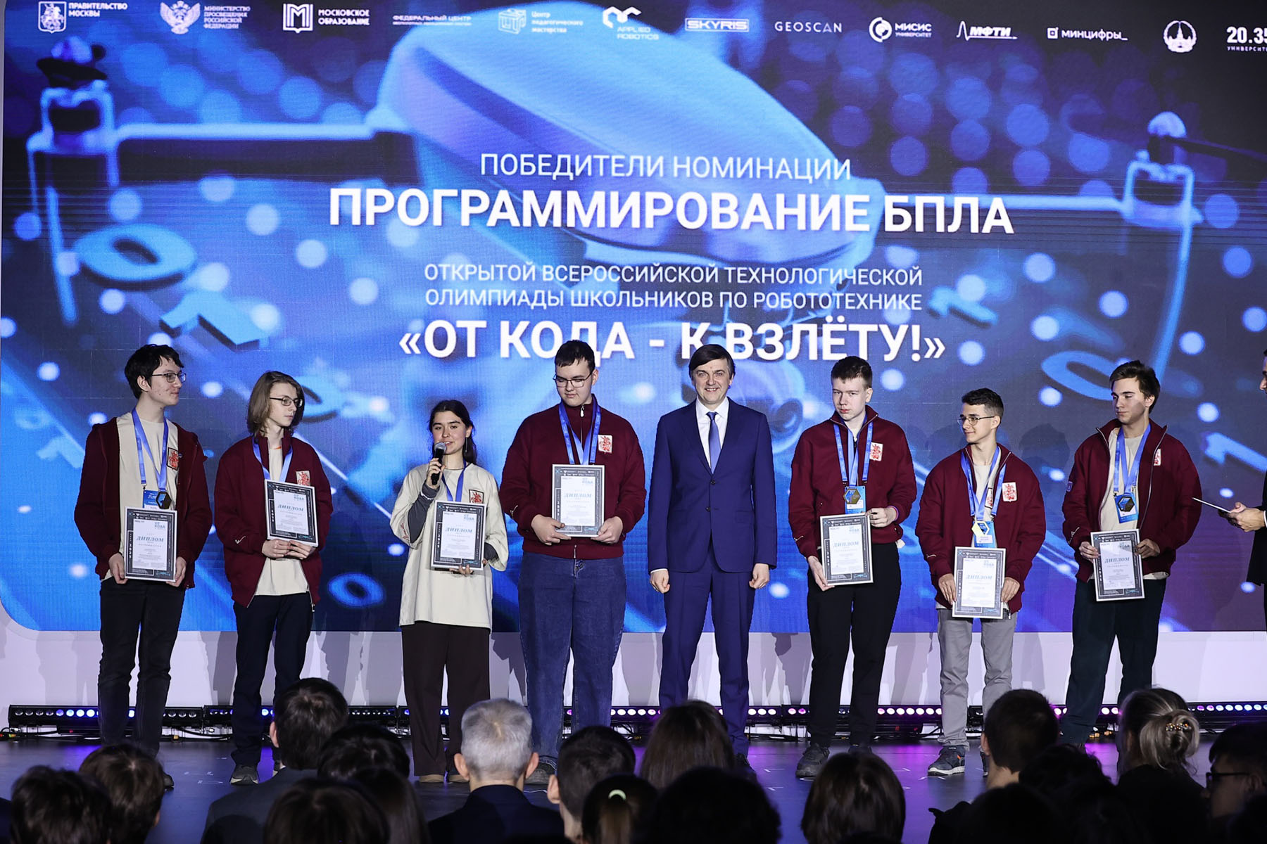 В Федеральном центре беспилотных авиационных систем в индустриальном парке «Руднево» состоялась церемония награждения призеров и победителей первой Открытой всероссийской технологической олимпиады по робототехнике «От кода к взлету». Об этом сообщили в пресс-службе Минпросвещения России.