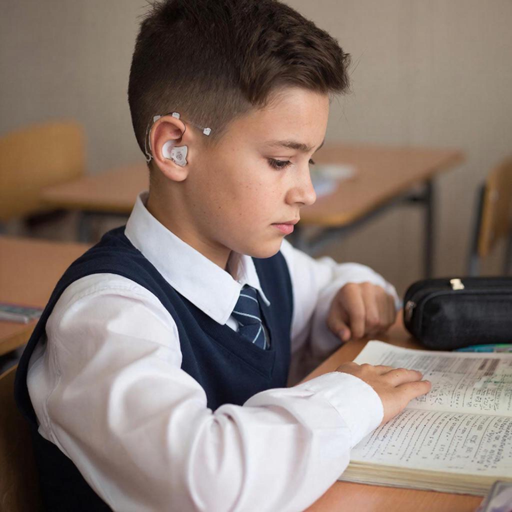Посадка: ребенок должен сидеть за первой-второй партой в центре ряда. Это сокращает расстояние до источника звука и позволяет видеть лицо учителя (чтение с губ — важный вспомогательный инструмент).