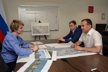 Губернатор Краснодарского края Вениамин Кондратьев и руководитель \”Сириуса\” Елена Шмелева обсудили вопросы сотрудничества между регионом и всероссийским образовательным центром для одаренных детей.