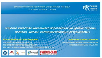 22 октября состоялся второй в этом учебном году вебинар Российского тренингового центра Института образования НИУ ВШЭ. Темой мероприятия в очередной раз стала оценка качества образования. Однако теперь организаторы решили обратить внимание на особенности использования оценочного инструментария и интерпретации результатов на начальном уровне образования.