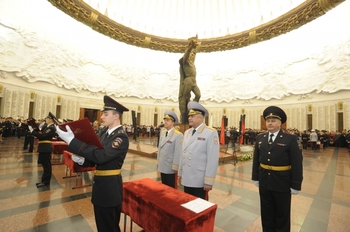 Первокурсники Московского университета МВД России приняли присягу в Зале Славы Центрального музея Великой Отечественной войны 1941-1945 годов на Поклонной горе.