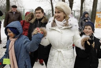 Супруга президента России Светлана Медведева отпраздновала начало Масленицы вместе с детьми-сиротами, собравшимися в понедельник в московском музее-заповеднике «Коломенское».