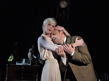В прямом смысле ярко построен переход сна в кошмар: вспыхивает красным огнем стробоскопическая лампа, дробящая движения и планы, так что видение буквально разваливается на куски, соответствуя сути происходящего и передавая тягостную атмосферу бреда. Но это мерцание бьет по глазам, так что кинематографический эффект хочется побыстрее переждать, не вникая в тонкие смысловые аллюзии. В спектакле чувствуется некоторая суетливость, идущая, возможно, от текстовых купюр.