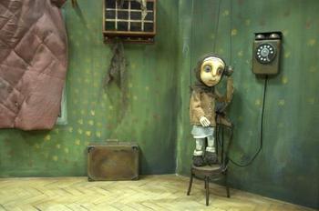 Надо сказать, перед худруком театра Алексеем Смирновым, который уже не раз поражал поклонников этого маленького камерного театра своей режиссерской выдумкой, в этой постановке стояло несколько сложных задач. Во-первых, как сделать так, чтобы придать событиям совсем не кукольный масштаб и колорит? Какими средствами создать ту самую документальность, брутальность, жесткость, на которую настроены зрители в восприятии войны? Вместе с художницей Екатериной Петуховой он, мне кажется, нашел замечательный выход: наглухо закрыл сцену стеной из грубых щитов, крашенной белой краской, передав аскетичный колорит времени. Добавьте к этому… анимацию – специально для спектакля творческая группа «Симбиоз» сотворила визуальный киноряд – на белой стене-сцене проецируются кусочки военной хроники, впрочем, очень скупой и незаезженной, и одновременно рисованные картинки старой Москвы. Звуковой фон не менее важен – обрывки знакомых советских мелодий, мирных звуков, знакомых с детства, сирен в сочетании с минималистичной, выразительной музыкой Андрея Заноги погружает в прошлое, как в воду, отсекая вас от современной сверхгромкой городской суеты.