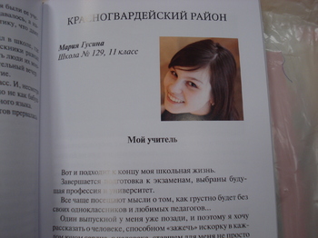 Вот как, к примеру, написал о своей сестре-учительнице восьмиклассник из школы № 159 Николай Лобачёв: «Вика работает в школе уже пять лет. И, конечно же, за это время я понял, что значит «быть Учителем». Тема школы и проблемы современного учителя очень часто звучат в её беседах с мамой. Я понял главное: сегодня учитель не оппонент учеников и не только их наставник, а в большинстве случаев это их товарищ, советчик, помощник в разрешении многих сложных вопросов». А десятиклассница Виктория Мишина из школы № 91выразила своё отношение к учителям такими словами: «Я не могу сказать, что у меня есть любимый учитель, просто потому, что каждый учитель, который был в моей жизни, по-своему хорош. Каждый имел свою неповторимую черту, путь обучения, характер и отношение к людям. Да, работа некоторых не являлась их призванием, но они были хорошими, добрыми и умными людьми, дети тянулись к ним. Многих из них я не забуду потому, что они дали неоценимо дорогие знания, научили по-другому относиться ко всему, что нас окружает».