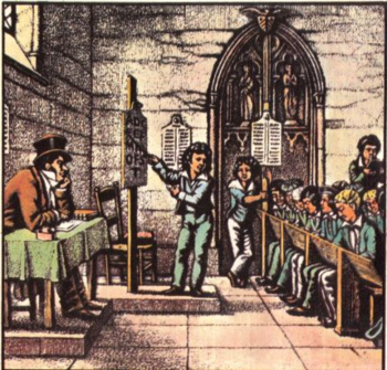 Из такой «расстановки сил» сразу ясны роли учителя и учеников. Педагог – хозяин положения, носитель истины и ее единственный трибун; школяры – единообразное, упорядоченное и внимающее знаниям сообщество. Эдакая череда «пустых сосудов», которые надлежит наполнить – последовательно и системно.