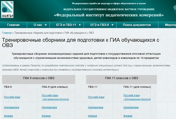 Для подготовки к ГИА обучающихся с ограниченными возможностями здоровья, были разработаны и опубликованы на сайте Федерального института педагогических измерений тренировочные сборники заданий по 14 учебным предметам. Они содержат задания, аналогичные тем, которые используются в экзаменационных материалах.