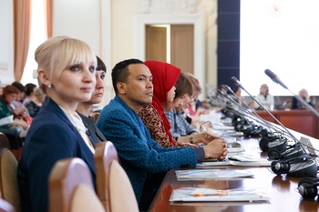 Участники конференции обсуждают развитие личностного и профессионального потенциала сотрудников сферы дошкольного образования, роль личности и психологическую компетентность педагога, возможности его профессионального и личностного роста через творчество и другие темы.