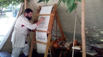 Честно говоря, я опасался, что в глаза будет бросаться ярко выраженная бутафория и массовая торговля. Не было ни того, ни другого. Я прошёл три бульвара — Гоголевский, Никитский и Тверской. На Гоголевском посмотрел на московитов XVII века. В одном шатре шла речь о том, как чеканились монеты того времени, в другом — учили писать буквицы. В третьем — между московитом-оружейником и заморскими гостями XVII века шла беседа о ефимках — серебряных талерах, которые имели хождение в России. Причём, по содержанию и характеру беседы было не совсем понятно, то ли обсуждение идёт между людьми нашего времени, то ли это говорят их герои.
