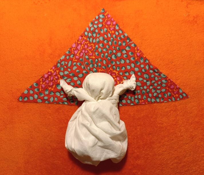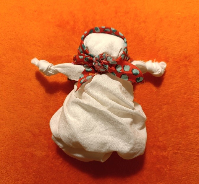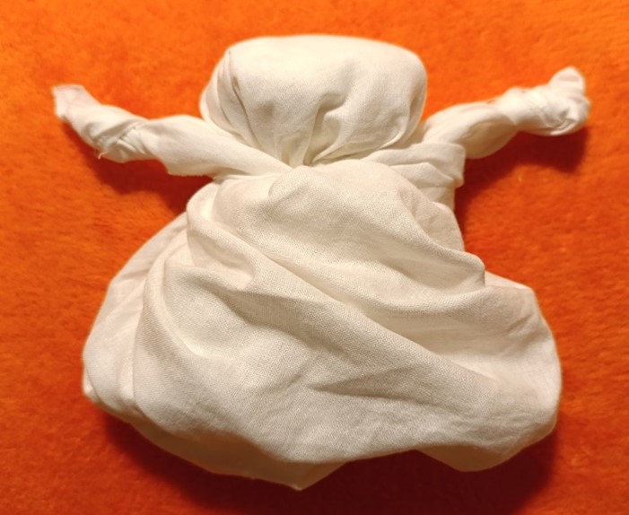 Самая простейшая тряпичная кукла – это узелковая игрушка. Такую куколку делала мама своему ребенку, чтобы он не плакал. Для ребенка эта куколка становилась другом, собеседником, хранителем секретов. В основании куколки получается мешочек, куда ребенок мог спрятать конфетку или что-то еще. Иглу при изготовлении этой куклы не используют.