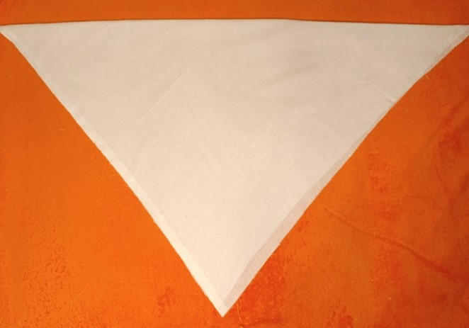 Берем ткань квадратной формы, соединяем два верхних угла.