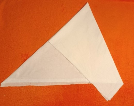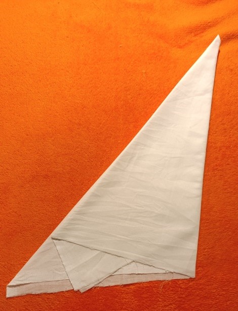 Размещаем ткань в виде прямоугольного треугольника (сгиб слева).