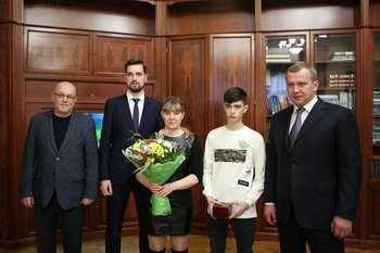 Врио губернатора Астраханской области Сергей Морозов наградил ученика 9-го класса школы № 53 Трусовского района Сабира Тявина за спасение подростка, провалившегося под лёд.