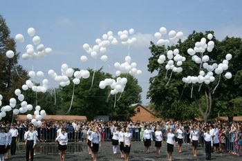 Ровно в 13:05, в тот момент, когда в спортзале раздался первый взрыв, во дворе разрушенной школы была объявлена минута молчания, а сразу после нее с ударом колокола в воздух взлетели белые шары, передает ИТАР-ТАСС.