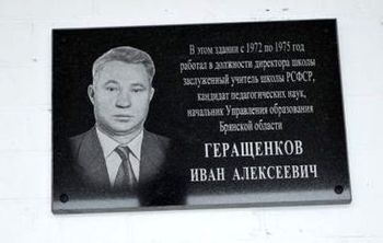 Иван Геращенков в свое время руководил этим учебным заведением, затем районным отделом образования, далее в течение более 16 лет возглавлял управление образования Брянской области (ныне департамент образования и науки региона). Образовательной деятельности он отдал 54 года.На церемонии открытия собрались ученики и близкие Ивана Геращенкова, учителя и школьники, жители села. Мудрым, добрым и душевным человеком, грамотным руководителем назвал Ивана Алексеевича заместитель губернатора, ученик Ивана Геращенкова Владимир Оборотов— У каждого из нас есть учителя, которые были наставниками и оставили след в наших сердцах, — сказал Владимир Оборотов. — Таким человеком для меня был Иван Алексеевич.Почетное право открыть мемориальную доску было предоставлено близким Ивана Алексеевича — жене Елене и дочери и Любови Геращенковым, поблагодаривших собравшихся за память о муже и отце. Иван Геращенков скончался 4 января 2018 года.Справка \”Учительской газеты\”:Иван Геращенков родился в 1944 году в деревне Ужа Трубчевского района. Через два года после окончания физико-математического факультета Новозыбковского пединститута молодого учителя назначили директором Старобобовичской средней школы. Под руководством Ивана Алексеевича школа стала занимать первые места в соревнованиях среди школ района, первой в области перешла на кабинетную систему обучения. Далее талантливому директору предложили руководящую должность и назначили заведующим отделом образования Новозыбковского района, которым руководил в течение пяти лет. За время его работы в районе было построено пять новых типовых школ на 1392 ученических места. Первыми в области школы района перешли на односменные занятия, впервые был завершен переход на кабинетную систему обучения, открыт первый на Брянщине учебно-производственный комбинат, впервые распространен опыт создания школ-комплексов. Новозыбковский район не раз являлся победителем всесоюзного, республиканского и областного соревнований по улучшению работы сельской общеобразовательной школы. В 2004 году Иван Геращенков — ректор Брянского института повышения квалификации работников образования, а с 2005-го и по 2008-й — директор департамента общего и профессионального образования области. Под его руководством качество образования Брянской области стало стремительно подниматься: была создана старшая профильная школа, вводились новые предметы и курсы, создавались иные типы учебных заведений — лицеи, гимназии, шла сплошная компьютеризация учебных заведений, а их руководители массово обучались в новом центре Интернет-образования. В архиве Ивана Геращенкова — почетные грамоты Министерства образования РФ, грамоты Губернатора, Брянской областной Думы. Иван Алексеевич — заслуженный учитель РФ, отличник народного просвещения РФ, Белоруссии, Украины.