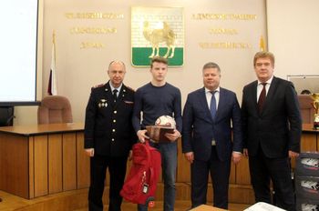 \”За активную гражданскую позицию и проявленную смелость при задержании в Администрации Челябинска в ходе аппаратного совещания Сергей Миронов и Владимир Елистратов вручили Глебу Зевакину благодарственные письма. Помимо этого от УМВД молодой человек награжден ценным подарком в виде спортивного инвентаря\”, — рассказали в правоохранительном ведомстве.