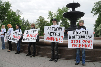 Напротив администрации Омска состоялся пикет представителей общественных организаций «Родительский совет» и «Омск молодой», требующих решить проблему с очередностью в детские сады.