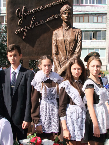 После подобных рассказов памятник учителю перестает быть обычной городской скульптурой и начинает восприниматься, как настоящий монумент, увековечивающий подвиг и самопожертвование многих педагогов. О чем напомнил в своей речи губернатор Курской области Александр Михайлов. За время Великой Отечественной войны одиннадцати учителям области было присвоено звание Героя Советского Союза, 1058 работников образования награждены орденами и медалями. Сегодня в области 152 Заслуженных учителя Российской Федерации, более 1000 Почетных работников общего образования РФ. 1 сентября 2015 года более 109 тысяч учеников сядут за парты в школах области, а 13 тысяч педагогов, являясь, по словам губернатора, примером беззаветного служения своему отечеству и своей малой родине, продолжат выполнение высокой благородной миссии – воспитания человека и гражданина. «Всем им низкий поклон и слова благодарности! Успехов, новых открытий, вдохновения, удачи, доброго здоровья и благополучия! А памятник пусть станет символом самоотверженного учительского труда».
