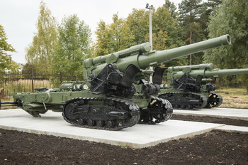 Самым уникальным экспонатом музея является советская мортира большой мощности калибра 280 мм Бр-5. Эта артиллерийская система была самым крупнокалиберным серийно производившимся советским артиллерийским орудием. Мортира отличалась оригинальной компоновкой с использованием гусеничного лафета. По некоторым данным за всё время производства (1939-1940 гг.) их изготовили всего 47 штук, включая опытные образцы.
