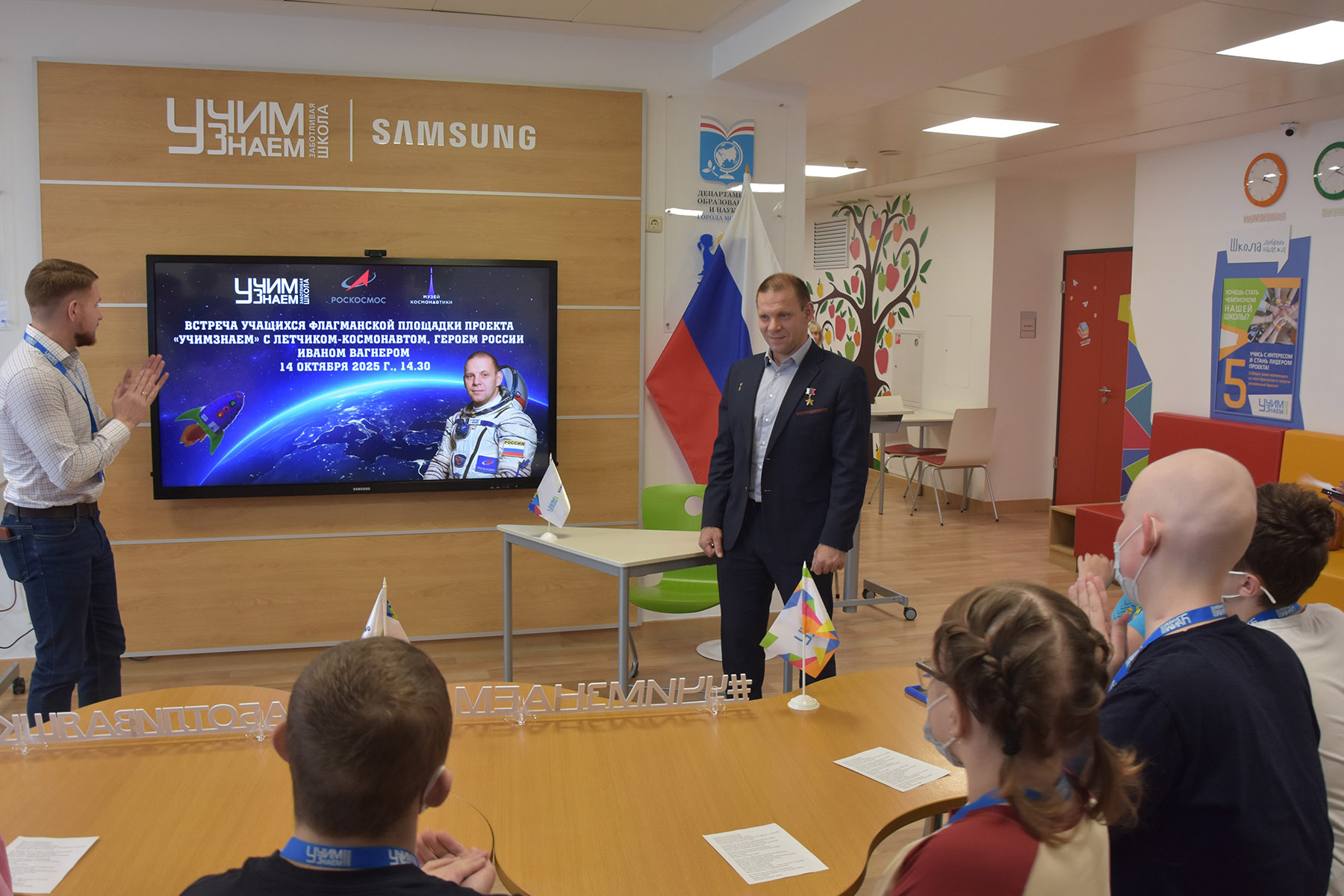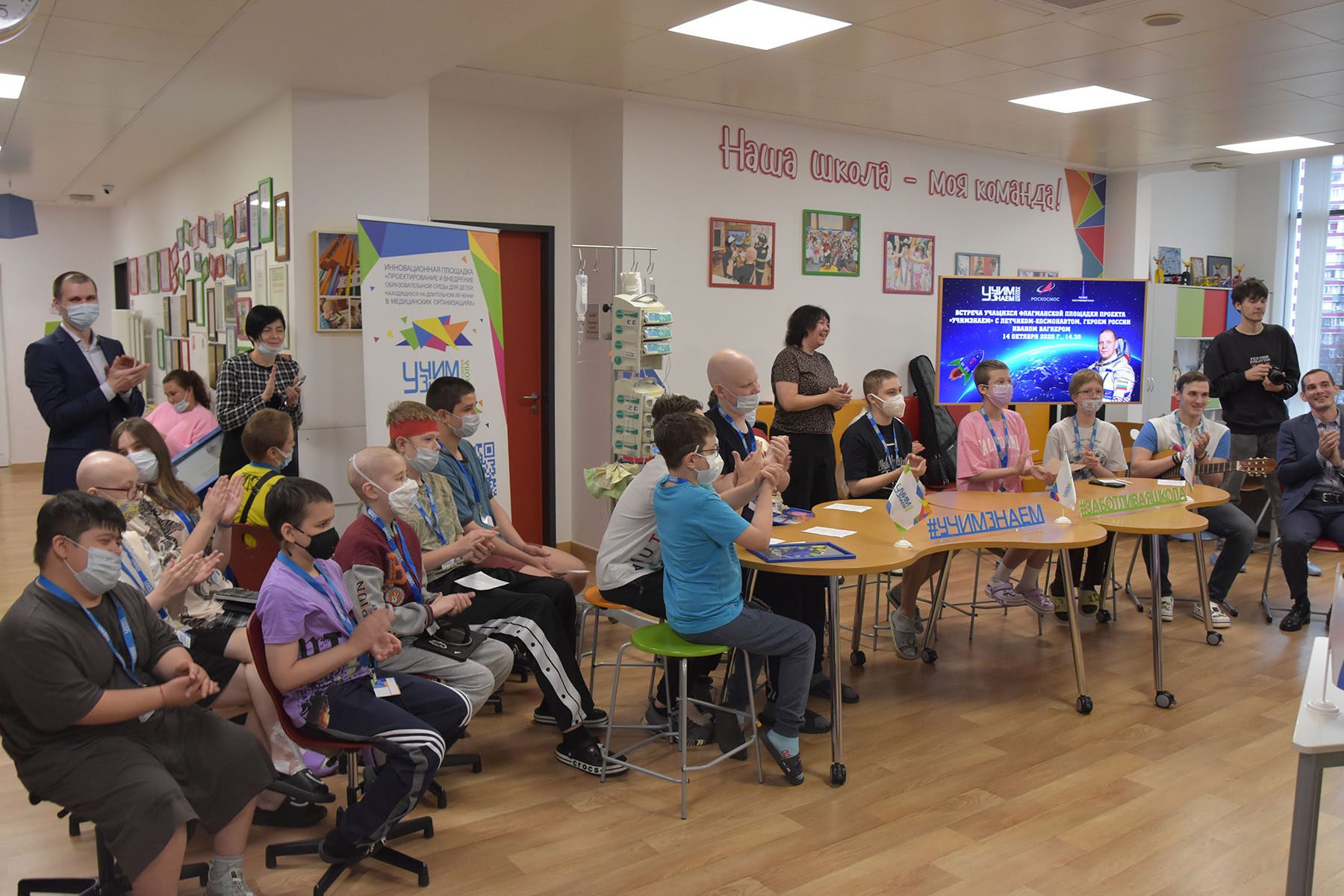 Четырнадцатого октября в Национальном медицинском исследовательском центре детской гематологии, онкологии и иммунологии имени Дмитрия Рогачева Минздрава России в Москве состоялась встреча учащихся госпитальной школы «УчимЗнаем» с Героем России, летчиком-космонавтом Иваном Вагнером.