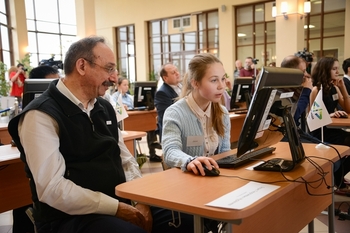На открытом уроке информатики школьникам было предложено в увлекательной игровой форме с использованием интерактивного тренажера решить задачу по программированию, а также показан мотивирующий видеоролик с участием руководителей крупных технологических компаний – партнеров акции.