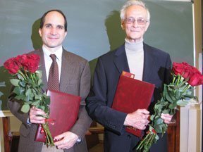 Лауреаты выступили с докладами. Спартак Беляев рассказал о плодотворном и вдохновляющем сотрудничестве теоретиков и экспериментаторов. Тема его лекции звучала так: «Квантовые вариации на тему атома водорода».