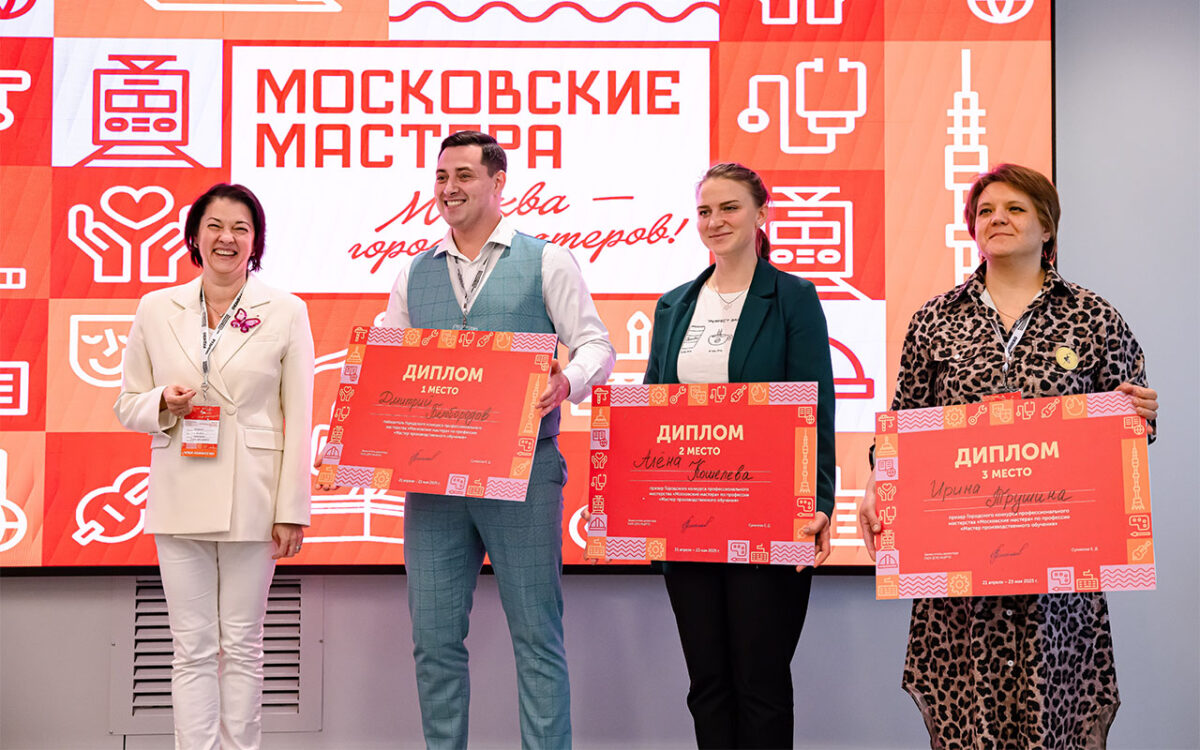 В этом году конкурс среди мастеров производственного обучения проходил по восьми направлениям — от гостеприимства и креативных индустрий до промышленности и транспорта. Лидером стал преподаватель профессиональных дисциплин медицинского колледжа № 1 по специальности «Лабораторная диагностика» Дмитрий Белобородов. Второе место заняла Алена Кошелева, преподаватель профессиональных дисциплин из Московского колледжа управления, гостиничного бизнеса и информационных технологий «Царицыно» по направлению «Дизайн (по отраслям)». Бронзовый призер — мастер производственного обучения Ирина Трушина, обучающий студентов в технологическом колледже № 21 по профессиям «Официант» и «Бармен».
