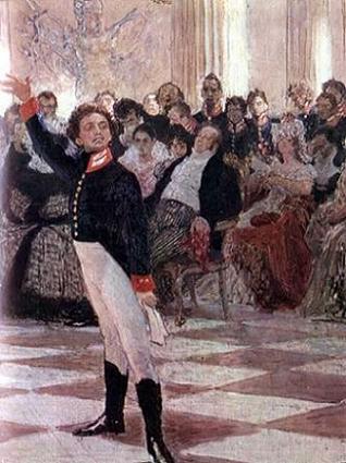Александр Пушкин на экзамене в Лицее (деталь картины И.Репина «А.С.Пушкин на акте в Лицее 8 января 1815 года»). Иллюстрация с http://www.liveinternet.ru/users/2010239/post64457216/