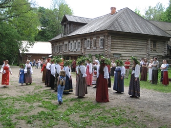 В Нижнем Новгороде уже много лет подряд центром празднования Троицы становится музей быта народов Поволжья на Щелковском хуторе. Несколько десятилетий назад в это живописное место были собраны со всей области лучшие образцы деревянного зодчества, от рубленого храма, построенного без единого гвоздя, до крестьянских жилых домов, амбаров и колодцев. При участии энтузиастов – нижегородских историков и архитекторов – был создан уникальный комплекс, имитрующий старинное русское село начала 19 века. Это село оживает несколько раз в году, когда фольклорные и этнографические ансамбли Нижнего Новгорода и области собираются сюда отмечать любимые народные праздники: День Покрова Святой Богородицы, Рождественские гулянья, Масленицу, Красную горку, Троицу, Ивана Купалу.