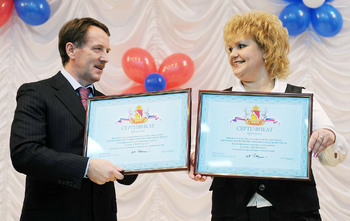 Также губернатор поблагодарил проектировщиков, строителей и педагогический коллектив, вручил школе сертификаты на 1,8 миллиона рублей для приобретения учебного оборудования и на 3 миллиона для обустройства уличной площадки для подвижных игр. Директор школы Ольга Косолапенкова получила еще и специальный подарок для школьной елки – новогодние елочные игрушки с автографом губернатора.