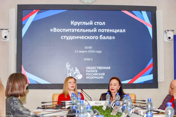 Круглый стол на тему «Воспитательный потенциал студенческого бала» прошел в Общественной палате РФ. На этой встрече был дан старт Всероссийскому культурно‑патриотическому проекту «Бал амбассадоров профессионалитета».