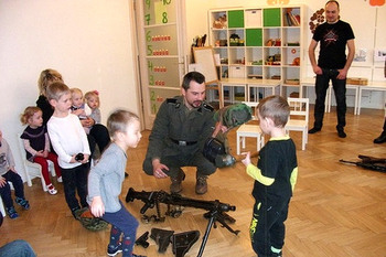 В один из детских садов в Риге пришли люди в форме легионеров \”Ваффен СС\”. Вместо игрушек они принесли малышам оружие времён Второй мировой войны – автоматы, гранаты и пулемёты. Такая педагогика многим жителям Латвии не понравилась.