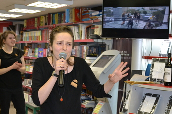 Авторы презентации театрального журнала «Замыслы» в магазине «Москва» так же горячо приглашали читателей в храм, но на этот раз искусства – в театр. Редакционная коллегия журнала пыталась привлечь публику к своему проекту при помощи рэпа. Молодые театральные критики пели сами, и весьма неплохо, что позволило собрать среди книжных полок небольшой зрительный зал и рассказать о новом издании.