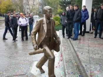 Сегодня на площадке перед главным корпусом Тольяттинского государственного университета (ТГУ) состоялось открытие новой скульптуры «Студент, спешащий на занятия». Прототипом этого «студента» стал всем известный образ Шурика в исполнении Александра Демьяненко.