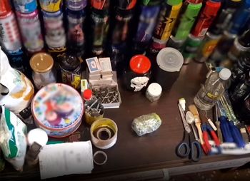 В ходе осмотра его квартиры следователи обнаружили самодельное взрывное устройство (СВУ), компоненты, необходимые для его изготовления, в том числе металлические поражающие элементы, а также 18 готовых к использованию бутылок с зажигательной смесью.