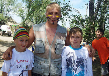 «Зурбаган – это приморский город, выдуманный Александром Грином, – говорит директор лагеря Анна Порываева. – В нем живут вольнолюбивые люди. Население нашего лагеря по духу очень похоже на зурбаганцев, поэтому мы и выбрали это название». За одну смену, которая длится семь дней, в лагере отдыхают восемьдесят подростков. Как считают педагоги лагеря, это оптимальный срок для жизни на природе. На каждом биваке – месте временного обитания и ночевки в условиях природной среды – живут по шестнадцать детей. Таких туристских стоянок в лагере пять, каждая имеет свой цвет, в тон которому выбирают футболки, флаг бивака и даже одеяла. Детей в лагере кормят пять раз, всю еду готовят на костре. Завтрак и обед варят на общей кухне повара, а вот над ужином «колдуют» сами ребята. Но не хлебом единым живут зурбаганцы. Испытать свои силы, доказать себе и окружающим, что ты на многое способен, позволяют полигон для спортивного ориентирования, скалодром, футбольное поле, туристская полоса препятствий. На ней оборудованы различные снаряды из веревок и бревен, для преодоления которых детям приходится прилагать и силу, и ловкость. Не всем с первого раза удается одолеть «бабочку», миновать «болото», не застрять на «переправе». Но ребята знают, что их всегда подстрахуют опытные инструкторы. Работать сюда приходят бывшие воспитанники, не желая расставаться со сказкой. Старший вожатый Алексей Мартынов в прошлом году в Анапе получил Гран-при Всероссийского конкурса молодых специалистов в сфере оздоровления детей и молодежи и премию Президента РФ. «Вожатым в этом лагере я работаю уже шестой год, – рассказывает Алексей. – Очень люблю детей, и они отвечают мне взаимностью. Стараюсь каждый раз придумывать для них что-то новенькое. Например, легенду смены. Вот сейчас у нас смена называется «Золото апачи». Поэтому и мы, и дети в боевой раскраске. А еще в лагере меня привлекает нормальное молодежное общение, возможность творить и видеть счастливые лица наших воспитанников». Лица маленьких зурбаганцев были действительно счастливыми – после сытного обеда торопились купаться в реке. На вопросы типа «как дела» отвечать им было некогда – на бегу дружно крикнули: «Здорово!».Фото автора