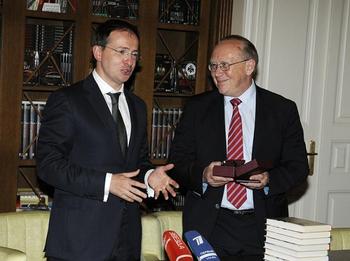 В Российском Военно-историческом обществе состоялось торжественное событие: министр культуры РФ Владимир Мединский вручил удостоверение Почётного члена РВИО (председателем которого он также является) российскому писателю, телеведущему программы «Умницы и умники», заведующему кафедрой мировой литературы и культуры факультета международной журналистики МГИМО Юрию Вяземскому.