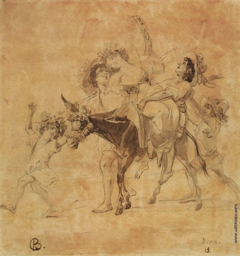 Еще один зал представляет «великого Карла», как называли на родине Карла Брюллова. Великолепный рисовальщик, художник классической выучки и романтических устремлений, он лучше многих умел выразить праздничность и ясность искусства своего времени, добившись успеха за рубежом. Используя те же материалы, что и Иванов, – тонированную бумагу, итальянский карандаш, акварель – и даже воплощая схожие сюжеты, он кажется ярче, жестче и «громче» вдумчивого соотечественника. Акварель «Прерванное свидание» изящнее, но и манернее, чем зарисовки Александра Андреевича, а юмор его острее.