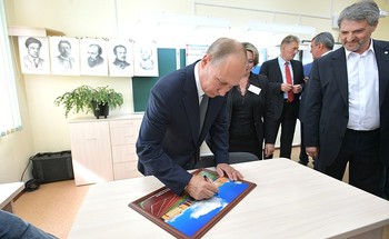 В рамках рабочей поездки в Новосибирскую область Владимир Путин посетил недавно построенную среднюю общеобразовательную школу №2 города Обь. Ее директор Марина Ващенко рассказала главе государства, что учреждение рассчитано на 825 учащихся.