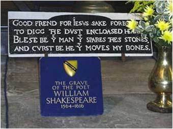 Шекспир был похоронен на почётном месте, как уважаемый и богатый человек. За это была заплачена немалая сумма. Но Шекспира, очевидно, беспокоила мысль, что через многие годы какой-нибудь богач будет претендовать на это место под алтарём, и прах ранее погребённого будет перенесён. В мире, где всё продаётся, это было вполне возможным. И он решился наложить на свою гробницу заклятие, которое могло бы остановить дерзких нарушителей его последней воли. Это проклятие выполнило своё назначение, ибо ни один церковный сторож не тронул костей, погребённых в этой могиле. Даже ученые, которые хотели проверить, нет ли в могиле рукописей, или восстановить по останкам облик драматурга, не посмели сделать этого.