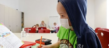 Лица ребятишек, закончивших в онкоцентре первую в своей жизни учебную четверть, закрывали медицинские маски. Нарядно одетые, первоклашки читали стихи и поздравления, взахлеб рассказывали министру о своих успехах в школе. И даже капельница, протянувшаяся к руке, не могла испортить им праздник.