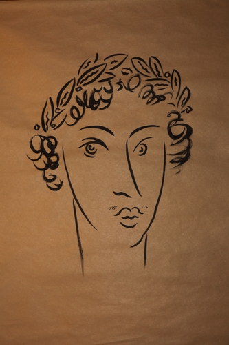 В cередине стихотворения начинает вучать параллельный французский текст из Парни. Свет гаснет, портрет исчезает, музыка затихает, французский текст звучит громче: