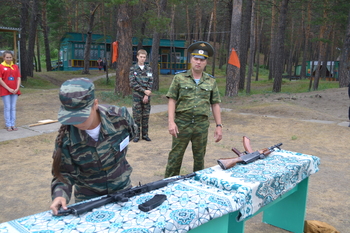 Затем прошла военизированная эстафета «Равнение на Победу!», соревнования по стрельбе, разборке и сборке АК-74, метанию гранаты в цель, переноске раненного, заправке постели, надеванию военной формы, преодолению элементов войсковой полосы препятствий… Ребята участвовали и в испытания по спортивному туризму.