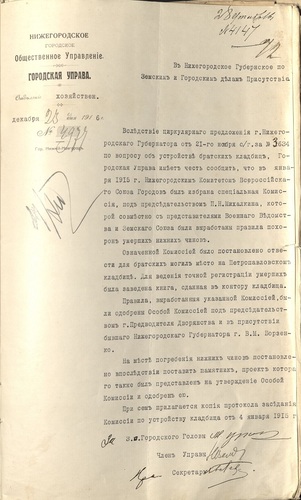 Дело не было пущено на самотек. В апреле 1915 года в Петрограде возникло «Всероссийское общество памяти воинов, павших в настоящую войну», принявшее на себя широкие обязанности по увековечиванию памяти. Размещалось оно на Литейном проспекте 20. Именно там собирались все сведения из губерний о братских кладбищах (кто из раненых воинов, когда и по какой причине умер). В архиве каждого областного центра есть списки захороненных на братских кладбищах – умерших от ран в госпиталях. То есть братские кладбища отнюдь не безымянны. И самое главное – в каждом крупном городе совершенно точно известны места братских захоронений.